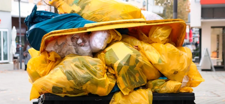 Backar från textilinsamling – trasiga kläder tillbaka i soporna.